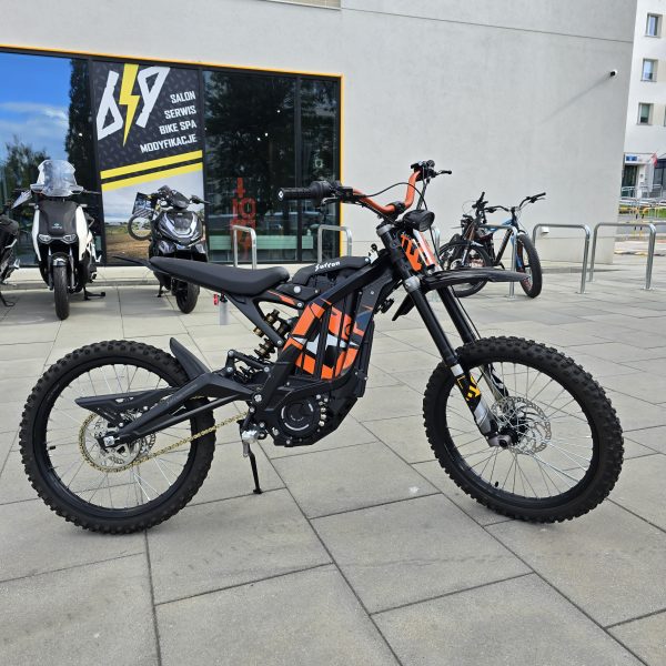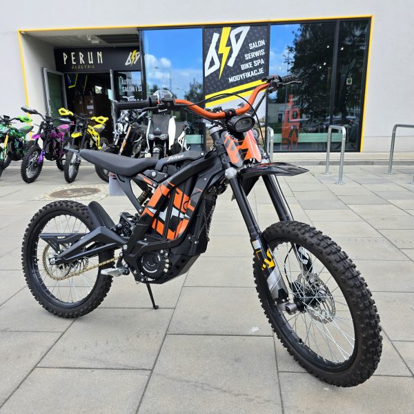 Surron Light Bee X 2024 od klienta naszego salonu. Stan bardzo dobry, 1170km przebiegu z pełną historia serwisową w naszym warsztacie Perun Electric. Przed wystawieniem na sprzedaż motocykl został w pełni sprawdzony, wykonaliśmy przegląd oraz dodaliśmy modyfikacje:
