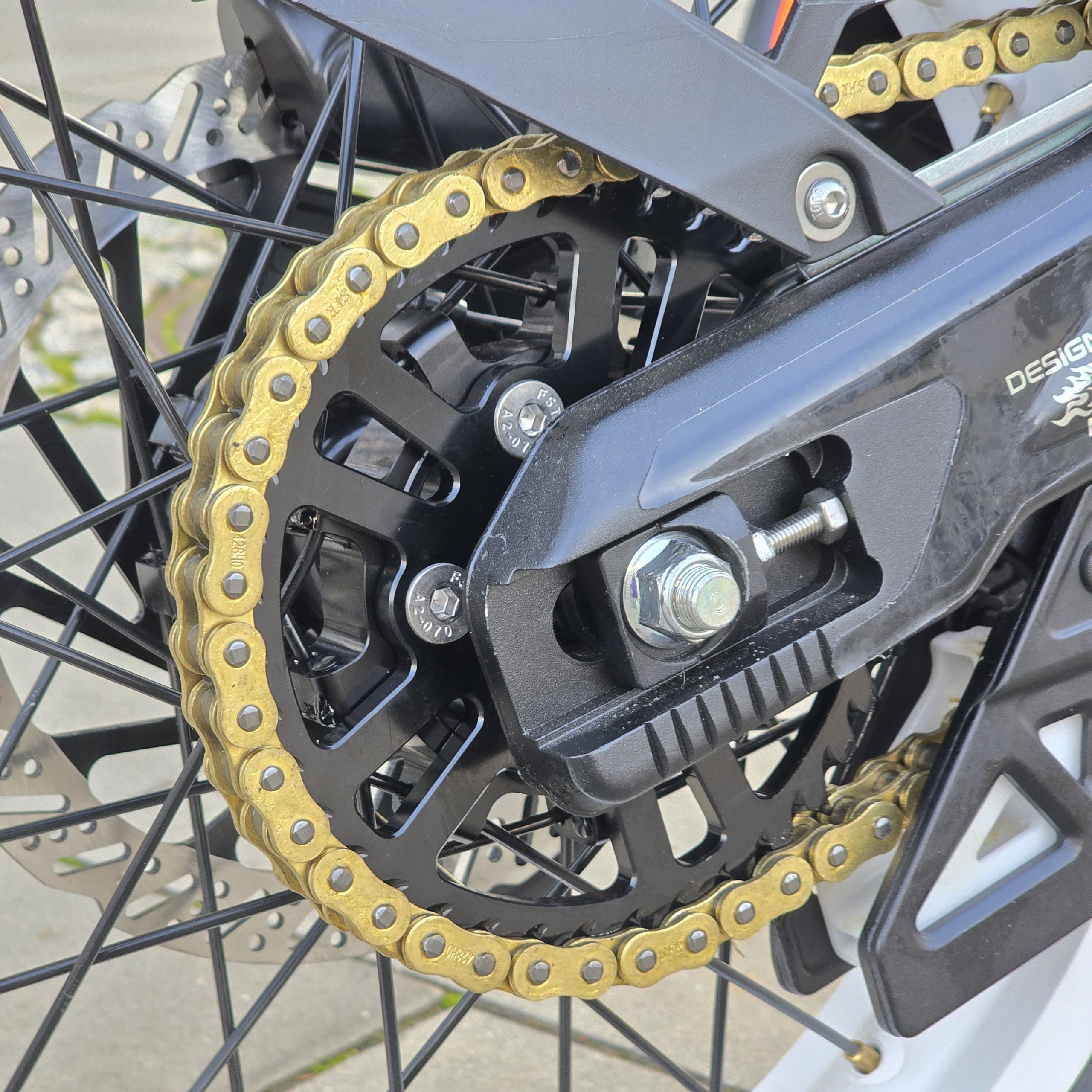 ➤ Przebudowana i jeszcze bardziej wzmocniona przekładnia, gruby łańcuch 428 oraz prowadnica łańcucha zapewniają niezawodne przenoszenie ogromnych mocy