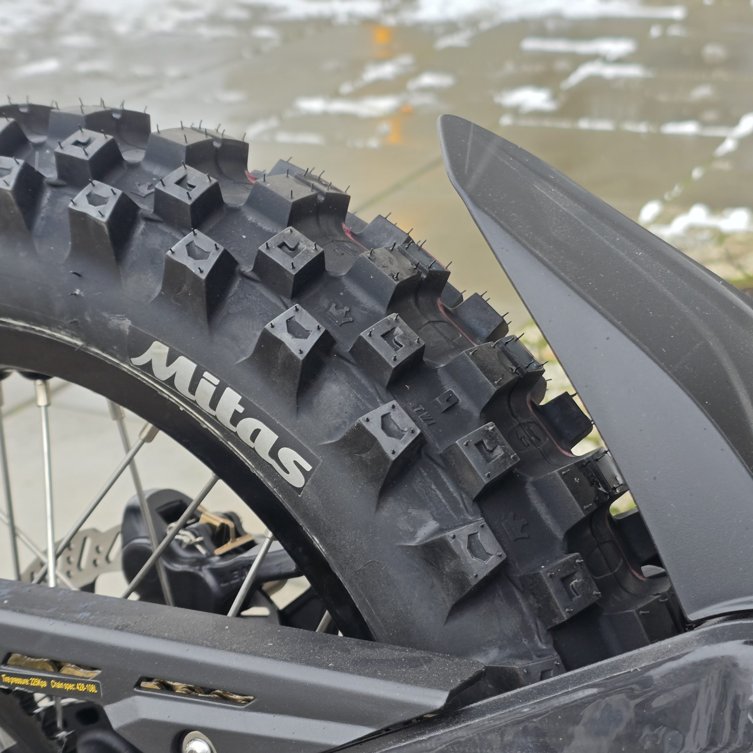 W pełni motocyklowe opony o agresywnym off-roadowym bieżniku w rozmiarach 90/100-16 z tyłu oraz 70/100-19 z przodu.